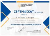 Професор кафедри теорії та історії держави і права факультету № 1 Дмитро Слинько пройшов тренінг для антикорупційних уповноважених «Управління корупційними ризиками». За результатами тренінгу професор отримав відповідний сертифікат. Набуті компетентності будуть використані в освітньому процесі.
