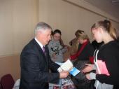 Молоді запропонували переглянути відеофільм про вищий навчальний заклад, а також презентували рекламну продукцію – буклети, газети. Усіх присутніх на зустрічі юнаків і дівчат Валерій Московець запросив до університету на День відкритих дверей, який відбудеться 13 грудня поточного року.