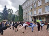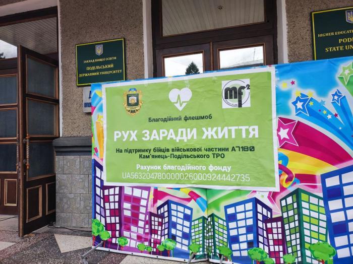 До благодійного флешмобу «Рух заради життя», проведеного на підтримку бійців територіальної оборони Поділля, долучилися курсантки факультетів № 1 та № 4 Харківського національного університету внутрішніх справ.