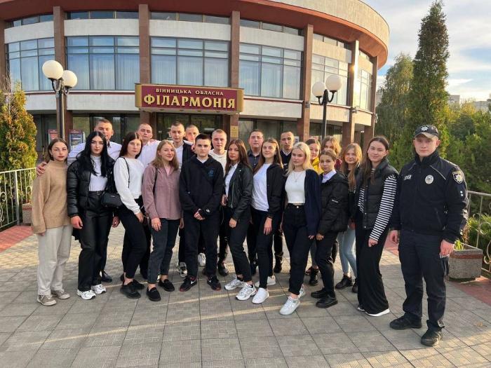 Курсанти 2 курсу факультетів № 2 та № 3 ХНУВС разом із фахівцем відділу соціально-гуманітарної роботи Андрієм Прохоровим відвідали концерт «Мистецькі перлини Вінниччини», що відбувся у стінах Вінницької обласної філармонії. Творчій захід пройшов у рамках проєктів «Територія музики спротиву» та «Мистецька Вінниччина».