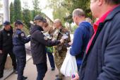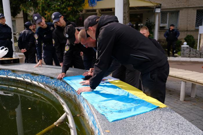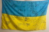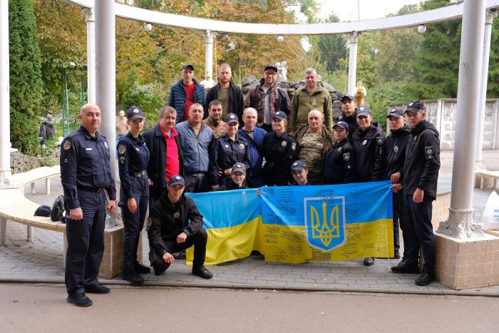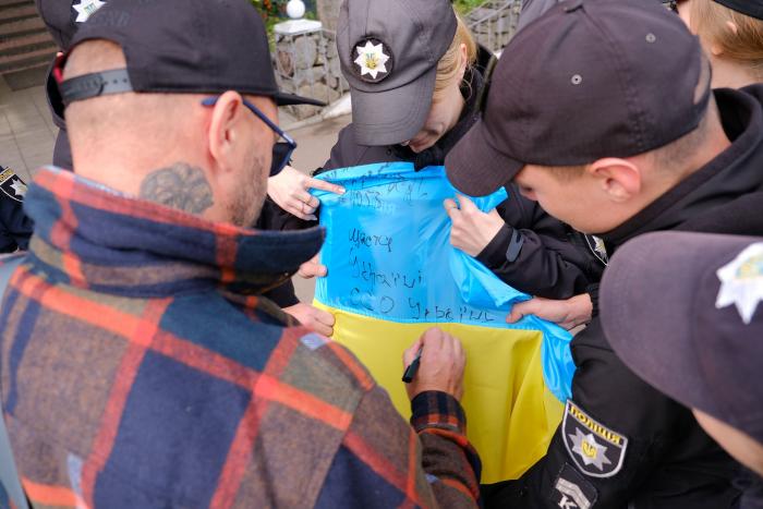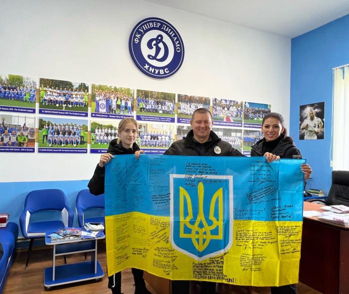 Курсанты, керівники факультетів та керівництво університету написали на державних стягах слова підтримки та побажання воїнам. Військові також подарували прапор університету зі своїми підписами.