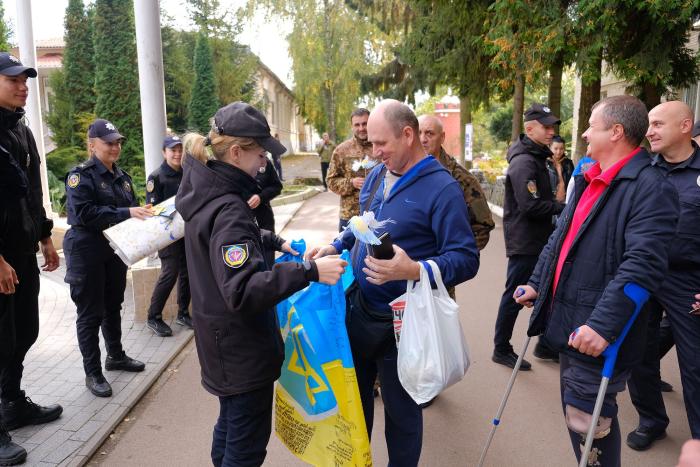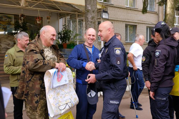 До поранених Героїв курсанти приїхали не з пустими руками – привезли бійцям власноруч виготовлені обереги, продукти харчування, солодощі, а також яскраві малюнки вихованців Вінницького навчально-реабілітаційного центру «Гніздечко» Вінницької обласної ради.
