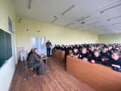 Особливу зацікавленість аудиторії викликав виступ заступника начальника УКР ГУНП України у Вінницькій області Олександра Мамлиги. Він ознайомив присутніх з алгоритмом першочергових дій працівників підрозділів кримінальної поліції у разі отримання інформації про вибухи на об’єктах цивільної та критичної інфраструктури, а також поділився з курсантами досвідом з практичної роботи, навівши приклади розкриття резонансних злочинів.