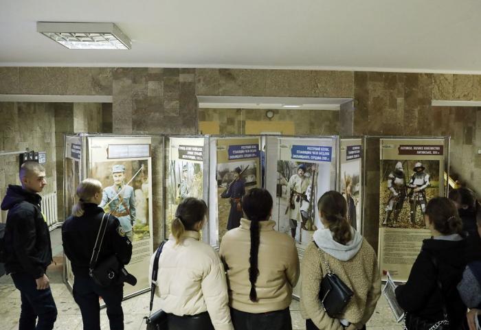 У Харківському національному університеті внутрішніх справ відбулося відкриття виставки «Воїни. Історія українського війська», яка була розроблена Українським інститутом національної пам’яті (УІНП). На відкритті були присутні: проректор Анатолій Клочко, начальник Центрального міжрегіонального відділу УІНП Богдан Галайко та провідний фахівець Олексій Серветник, курсантська молодь.