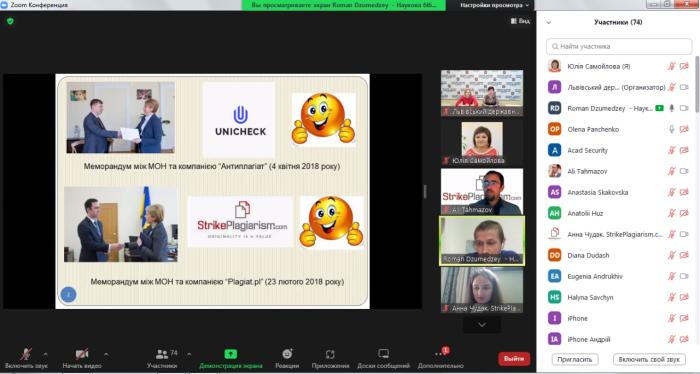 Учасники круглого столу обговорили питання із дотримання правил академічної доброчесності в освітньому процесі закладами вищої освіти; особливості застосування нових функцій антиплагіатної системи Strike Plagiarism тощо. Представники провідних ЗВО України виступили з презентаціями та доповідями стосовно різних аспектів дотримання академічної доброчесності, розповіли про досвід організації роботи з дотримання принципів академічної доброчесності у їх вишах. У заході взяли участь понад 80 учасників, до фахової дискусії долучилися науковці, аспіранти та магістранти.