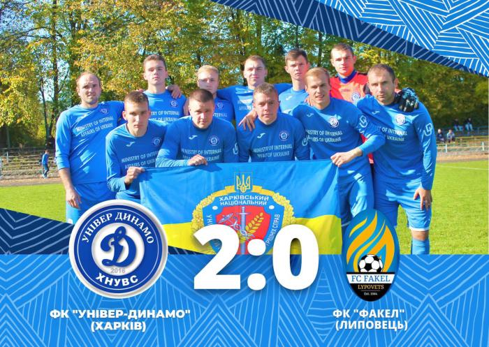 У принциповому поєдинку за перше місце ФК «Універ-Динамо» ХНУВС зустрівся з одним із старожилів, а зараз єдиним представником від Вінницької області у чемпіонаті ААФУ (Асоціація аматорського футболу України) ФК «Факел» м. Липовець.