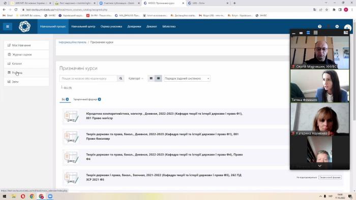 На виконання рішення робочої наради керівників МВС України та ректорів ЗВО, що належать до сфери управління МВС України, представниками навчально-методичного відділу спільно з інформаційно-технічним відділом проведено інструктивну нараду щодо ознайомлення з можливостями, функціоналом та особливостями роботи в Інформаційно-комунікаційній системі «Освітньо-науковий портал МВС України». Нараду було проведено для заступників деканів факультетів з навчально-методичної роботи, філії та коледжу, завідувачів кафедр, науково-педагогічних працівників за допомогою відеоінструменту Zoom.