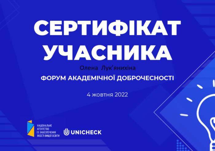 Доцентка кафедри адміністративного права та процесу факультету № 1 Ірина Казанчук, завідувачка кафедри соціально-економічних дисциплін Сумської філії ХНУВС Олена Лук’янихіна взяли участь у міжнародному форумі «Форум академічної доброчесності» від Unicheck та Національного агентства із забезпечення якості освіти України.