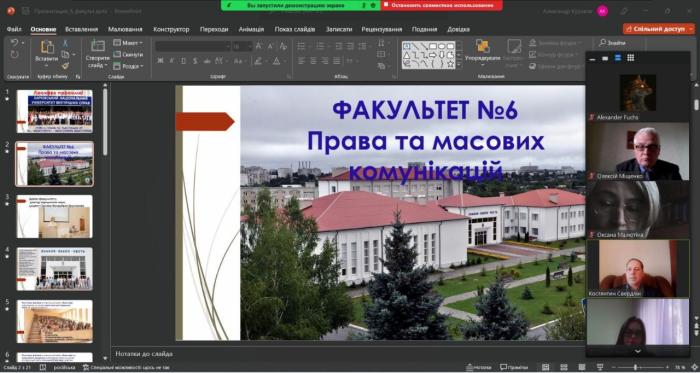 Керівництво факультету № 6 разом із працівниками підготовчого відділення ХНУВС провели онлайн-конференцію із абітурієнтами. На зустріч були запрошені учні, їх батьки, керівники та вчителі середніх навчальних закладів м. Харкова. У заході взяли участь більше 80 представників загальноосвітніх шкіл № 37, № 53, № 66, № 84, № 97, № 139, № 167 та технологічного ліцею № 9.