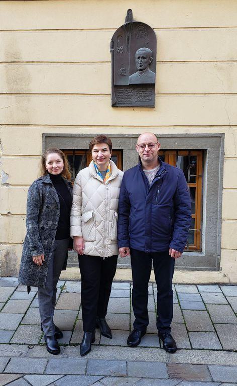Заступник начальника навчально-методичного відділу Сергій Марчишин і головний науковий співробітник науково-дослідної лабораторії з проблем наукового забезпечення правоохоронної діяльності та якості підготовки кадрів Тетяна Матюшкова у складі робочої групи з реалізації проєкту міжнародної технічної допомоги «Покращення стану захищеності та реагування стосовно джерел іонізуючого випромінювання в Україні», перебуваючи у місті Братислава (Словацька Республіка), відвідали місця, пов’язані з життям Григорія Сковороди. А саме - Інститут мовознавства імені Людовита Штура, на фасаді якого знаходиться пам’ятна дошка на честь мандрівного філософа-вільнодумця і вчителя Григорія Сковороди. Саме у словацькій Братиславі видатний українець відвідував заняття з поетики у Євангелічному лютеранському ліцеї.