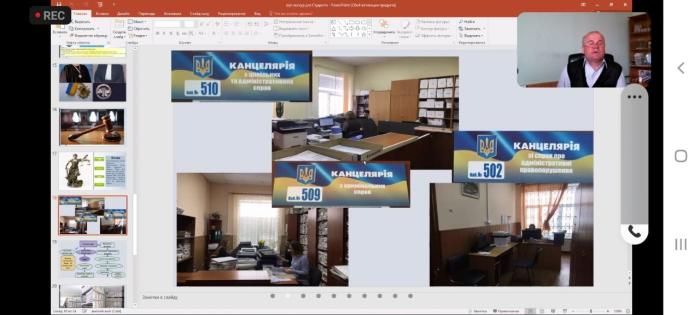 Доцентка кафедри соціально-економічних дисциплін Сумської філії Харківського національного університету внутрішніх справ Світлана Виганяйло в межах вивчення дисципліни «Інформаційне забезпечення професійної діяльності» дистанційно провела заняття для студентів першого курсу, які навчаються за спеціальністю «Право», за участю судді Зарічного районного суду м. Суми Миколи Шершака.