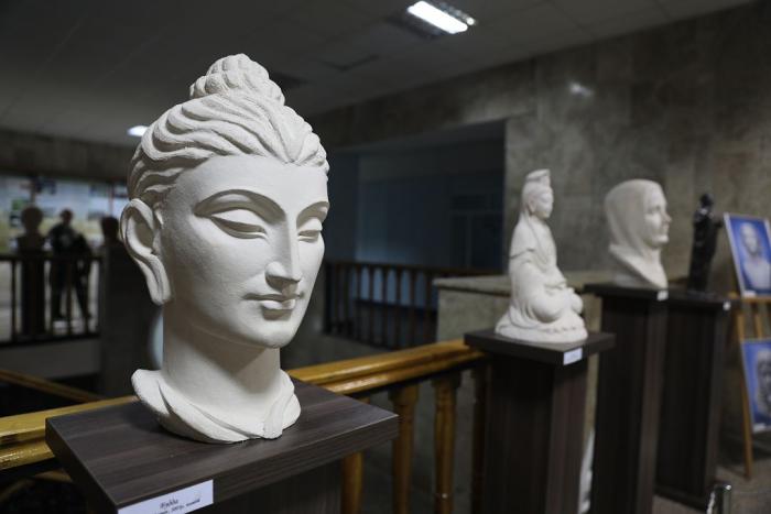 На виставці у Харківському національному університеті внутрішніх справ представлені 22 скульптури та 20 фотографій скульптур, що презентують здобутки людства за тисячоліття його історії — «Конфуцій», «Лао-Цзи», «Мойсей», «Будда», «Орфей», «Піфагор», «Сократ», «Платон», «Фідій» та багато інших. У скульптурних портретах відображено інтелектуальні зусилля особистості, збагачення її життєвого досвіду, засвоєння нового через вивчення продуктів іншої культури, часто й іншої картини світу.