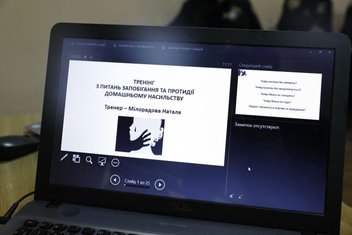 Під час тренінгу його учасники розглянули наступні теми: причини виникнення домашнього насильства; особливості та феномени насильства (циклічність, повторюваність, зростання, тотальність, закріплення, феномен соціальної естафети, стокгольмський синдром, комплекс жертви, вторинна вигода); портрети агресорів і постраждалих від насильства; методи кривдника (ізолювання, концентрація уваги, виснаження, змученість жертви, погрози, періодичне виявлення поблажливості, демонстрація «всемогутності», деградація, приниження почуття власної гідності, примушування до виконання простих вимог).