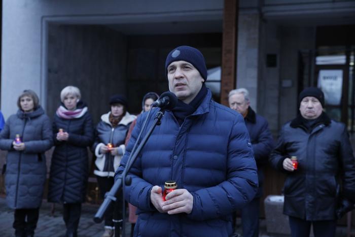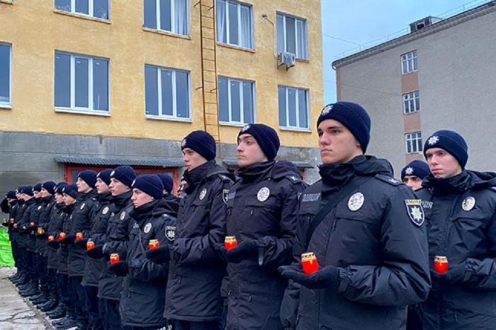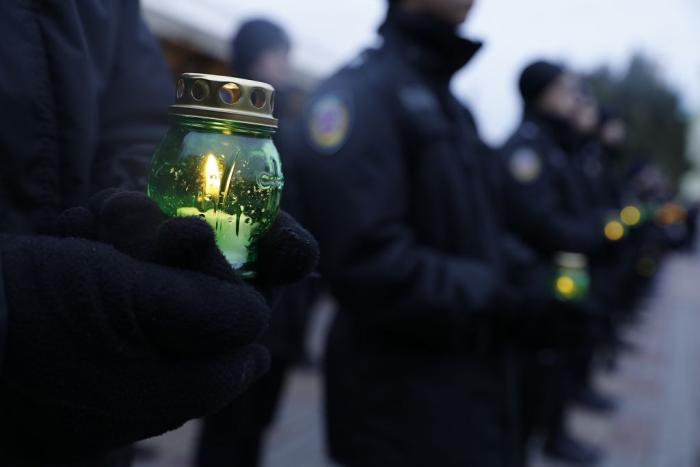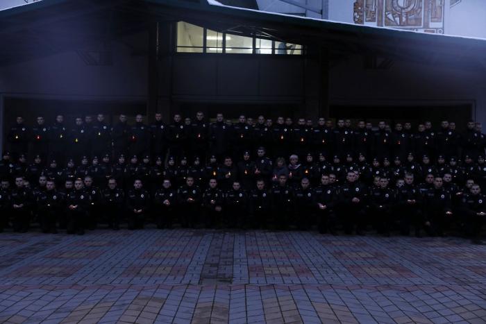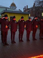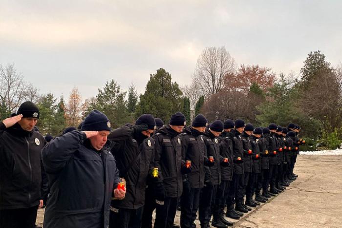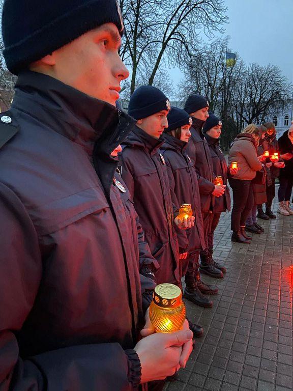 Від імені ректора університету Валерія Сокуренка до присутніх - працівників, курсантів, студентів, які, запаливши свічки зібралися, щоб вшанувати пам`ять жертв трагедії, звернувся перший проректор вишу Олександр Моргунов. Він зазначив, що народ, який не пам'ятає своєї історії - не має майбутнього і, звертаючись до курсантів наголосив, що навчання - це головне завдання, яке ставить перед ними сьогодні держава: “Дуже скоро ви продовжите нести службу в практичних підрозділах Національної поліції, мусите робити свою справу чесно й відповідально, бути готовими до викликів сьогодення, й вживати усіх заходів для того, щоб в нашій історії більше ніколи не було таких сумних і трагічних сторінок. Наше з вами майбутнє залежить від усіх нас!”. Перший проректор запропонував приєднатися до Загальнонаціональної хвилини мовчання та вшанувати пам`ять закатованих голодом співвітчизників.