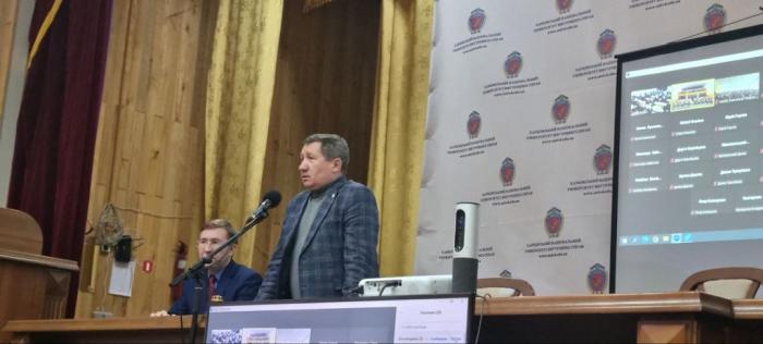 Проректор університету професор, доктор юридичних наук Анатолій Клочко, звертаючись до аудиторії, зазначив, що ми є свідками боротьби України не тільки за вільний історичний вибір свого майбутнього, але і за власну національну пам’ять. Саме її усвідомлення дає сили українським воїнам на передовій, наснаги волонтерам і витримки усім громадянам, які потерпають від терористичних ракетних ударів ворога.