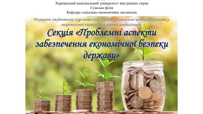 Чергове засідання секції «Проблемні аспекти забезпечення економічної безпеки держави» наукового студентсько-курсантського гуртка кафедри соціально-економічних дисциплін Сумської філії Харківського національного університету внутрішніх справ відбулося за темою «Актуальні проблеми розвитку національної економіки в умовах глобалізації».