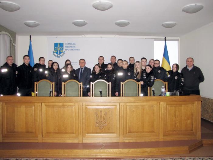 З метою формування поваги до органів прокуратури, підвищення рівня правової культури, обізнаності про порядок захисту прав і свобод людини, можливості проходження навчальної практики, для студентів та курсантів 1 курсу професором кафедри юридичних дисциплін Сумської філії Харківського національного університету внутрішніх справ Олексієм Шумілом було проведено виїзні заняття із навчальних дисциплін «Теорія держави і права» та «Судові та правоохоронні органи України» на базі Сумської обласної прокуратури.