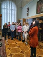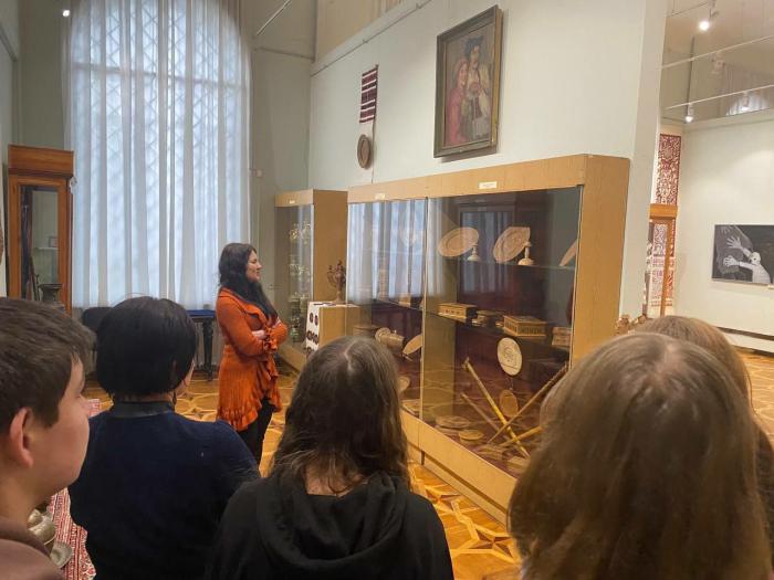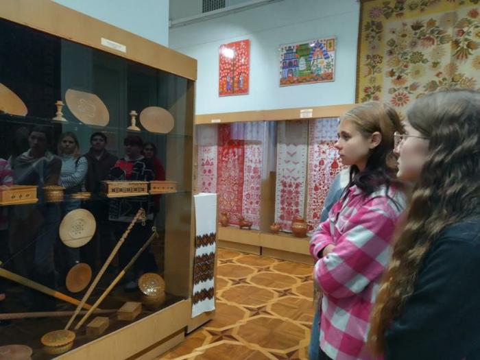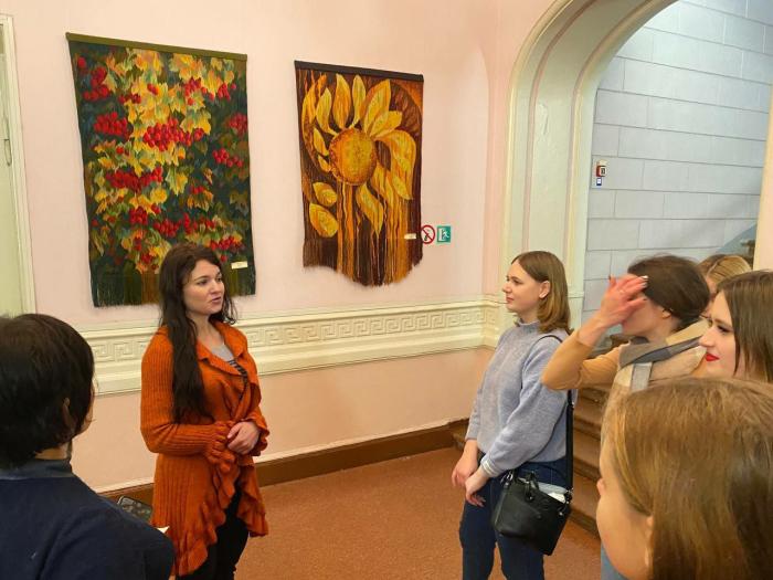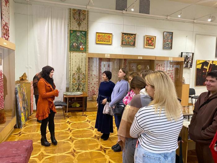 На занятті, організованому професоркою кафедри гуманітарних дисциплін Надією Демиденко, за участю старшого наукового співробітника музею Ганни Святець студенти ознайомилися з унікальними експонатами декоративно-ужиткового мистецтва ХIХ ст. різних регіонів України.