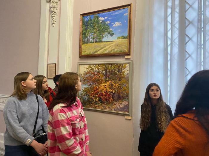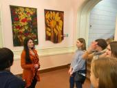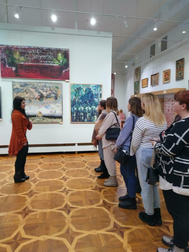 Під час заняття студенти дізнались, що Сумський обласний художній музей був заснований у 1920 році художником та громадським діячем Никанором Онацьким, який у 1937 році був розстріляний як «буржуазний націоналіст». В основу музею було покладене мистецьке зібрання (понад 7 тис. екземплярів) відомого київського промисловця, колекціонера і мецената О. Гансена. Ганна Святець розповіла, що у період Другої світової війни експонати вивозились із Сум. На сьогодні, у зв’язку з військовими подіями на території України, унікальні твори мистецтва західноєвропейських художників ХVI – ХIХ ст. зняті з експозиції і готові до евакуації у безпечні міста України.