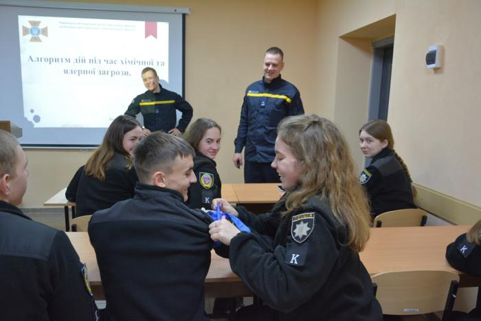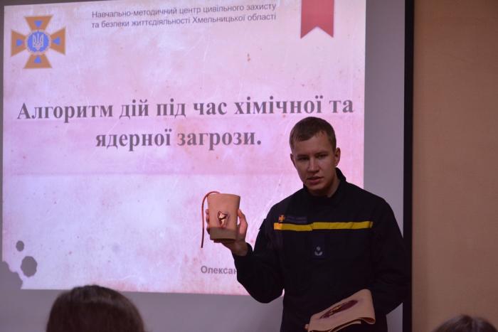 На території Сумщини триває робота позаштатних груп територіальних підрозділів Державної служби України з надзвичайних ситуацій, які проводять інформаційно-роз’яснювальну роботу серед населення області. Працівники Головного управління ДСНС у Хмельницькій області, що входять до складу позаштатної групи, провели тематичний тренінг для курсантів Сумської філії Харківського національного університету внутрішніх справ. Вони ознайомили молодь з основами мінної безпеки та алгоритмом дій при виявленні вибухонебезпечних предметів, з домедичною допомогою та основами цивільного захисту, у тому числі діями у разі загрози та виникнення надзвичайних ситуацій воєнного характеру. Для кращого засвоєння інформації юнакам і дівчатам надали тематичні пам’ятки щодо правил безпеки.