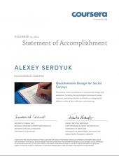 Начальник науково-дослідної лабораторії з проблем організації навчального процесу заочного та дистанційного навчання навчально-наукового інституту заочного та дистанційного навчання, підполковник міліції Олексій Сердюк пройшов навчання в Мічиганському Університеті на міжнародному порталі дистанційного навчання Coursera та отримав сертифікат про завершення курсу Questionnaire Design for Social Surveys (Розробка анкет для соціальних досліджень).