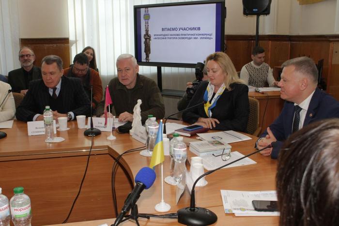 У Харківському національному педагогічному університеті імені Г. С. Сковороди пройшла Міжнародна науково-практична конференція «Філософія Григорія Сковороди та ми – українці», присвячена 300-річчю від дня народження видатного українського філософа, поета, педагога. На урочистому відкритті конференції були присутні почесні гості: начальник Харківської обласної військової адміністрації Олег Синєгубов, голова Харківської обласної ради Тетяна Єгорова-Луценко, голова Харківської міської ради Ігор Терехов, заступниця начальника ХОВА Віта Ковальська, директор Департаменту науки і освіти ХОВА Олексій Литвинов, голова Північно-східного наукового центру НАН і МОН України Володимир Семиноженко, ректори та проректори закладів вищої освіти Харківщини та інші. Головною ідеєю, яка лунала у виступах гостей і доповідачів, була думка щодо життєвості спадку Сковороди, його співзвучності з нашою буремною сучасністю.