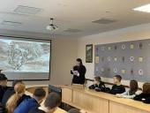 Доцентка кафедри кандидатка філологічних наук, доцентка Вікторія Перцева та старша викладачка кандидатка філологічних наук Олена Оверчук обрали класичну форму засідання з виголошенням курсантських наукових доповідей і подальшим їх обговоренням аудиторією. Теми доповідей курсантів і курсанток факультету № 2 були досить цікавими. Анастасія Слободенюк підготувала доповідь на тему «Григорій Сковорода: легенди і дійсність», Андрій Гладкий – «Роль сковородинівських висловів у створенні сучасних технологій», Лілія Путято – «Цікаві факти про Григорія Сковороду», Ксенія Коновалова та Дар’я Семчук – «Тип інтелігента, «українського Сократа» Григорія Сковороди», Олена Бацінко – «Жанр байки у творчості Григорія Сковороди», Аліна Ільяшова – «Актуальність морально-етичних орієнтирів творчої спадщини Григорія Сковороди». Курсанти факультету № 3 Роман Комаров і Дарина Михальова виступили з доповіддю «Пам’ятники Григорію Сковороді в Україні», яка супроводжувалась демонстрацією інтерактивної мапи, розробленої курсантами факультету № 2. На засіданні були присутні проректор університету доктор юридичних наук, професор Анатолій Клочко та заступник декана факультету № 2 з навчально-методичної роботи кандидат педагогічних наук доцент Сергій Гіренко, які звернулися до аудиторії з промовами, присвяченими Сковороді.