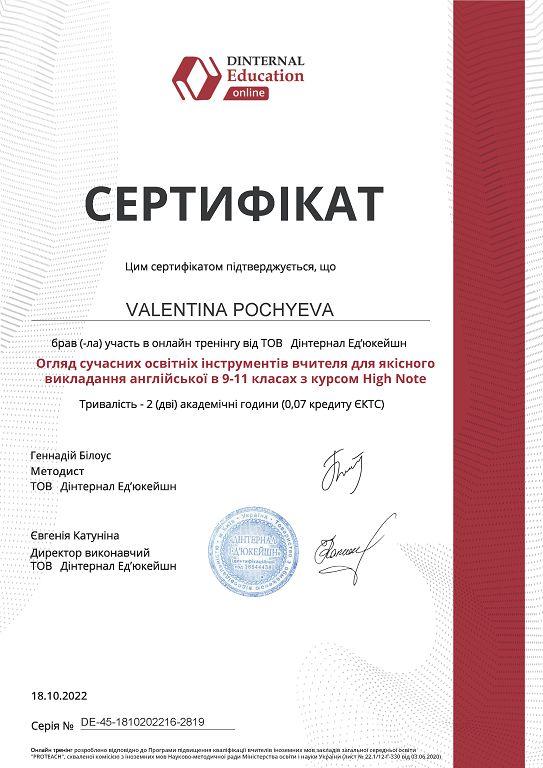 Завідувачка кафедри іноземних мов факультету № 4 ХНУВС Олена Статівка та доцентка цієї ж кафедри Валентина Почуєва взяли участь в онлайн-тренінгах від ТОВ «Дінтернал Ед’юкейшн». Олена Статівка ознайомилася із сучасними способами викладання та вивчення граматики онлайн та ефективними вправами на контрольоване відпрацювання граматики в режимі онлайн-тренінгу “MyGRAMMARLab: Інноваційний інструмент для викладання та вивчення граматики англійської мови”. Валентина Почуєва опанувала інструменти викладача для офлайн-навчання та цифрові інструменти для онлайн-навчання під час тренінгу «Огляд сучасних освітніх інструментів вчителя для якісного викладання англійської в 9-11 класах з курсом High Note».