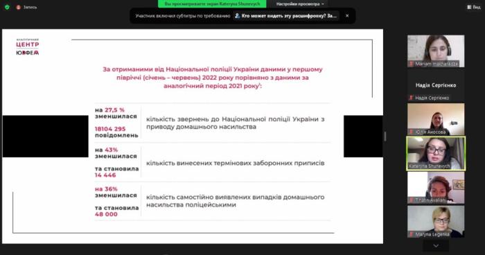 Директорорка проєкту «Покончим с насилием в отношении женщин», відділення Структури «ООН‑жінки» в Грузії – Ірина Джапарідзе поінформувала щодо нещодавної відсутності терміну «жінка» в правових обговореннях насилля в сім'ї, стандартизацію кожного окремого випадку та заходи щодо попередження можливих жертв.