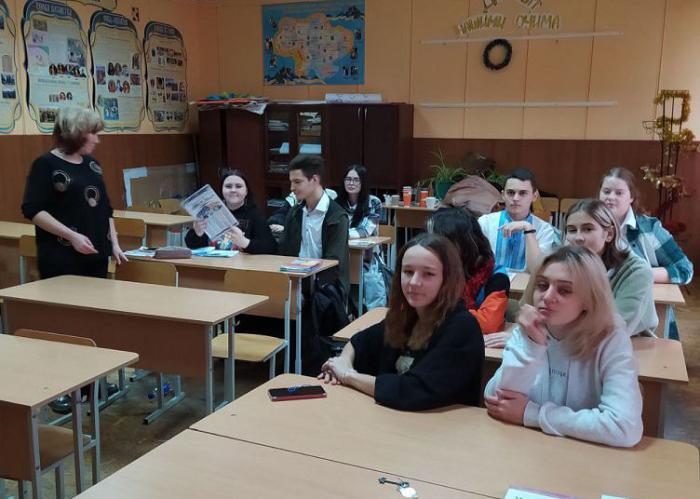 У межах профорієнтаційної роботи було проведено бесіду щодо значення освіти для кожної молодої людини, незважаючи на війну. Викладачка надала майбутнім абітурієнтам ґрунтовну інформацію про факультети та спеціальності, за якими здійснюється підготовка фахівців в університеті, пояснила переваги навчання у Харківському національному університеті внутрішніх справ, правила вступу до вишу, ознайомила з роботою підготовчого відділення, кафедри військової підготовки та запросила на навчання до ХНУВС.