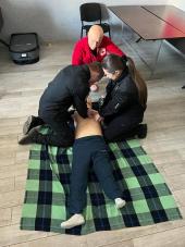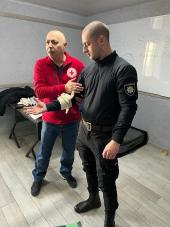 Курсанти Харківського національного університету внутрішніх справ, які проходять навчальну практику та стажування у підрозділах поліції, разом із поліцейськими Ізюмського районного управління поліції вчились надавати домедичну допомогу. Заняття провели тренер-інструктор Червоного Хреста України та помічник начальника з гуманітарних питань ГУНП в Харківській області В'ячеслав Марков. Після проведення вступного курсу представники Червоного Хреста передали працівникам поліції 20 спеціалізованих аптечок, укомплектованих всіма необхідними засобами та препаратами.