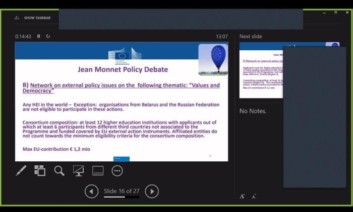 Під час заходу учасники отримали інформацію щодо імплементації, розповсюдження інформації та процедури звітування за проєктами. Університет представляла команда програми Еразмус+ за напрямом Жан Моне проєкту «Світлофор політики ЄС: ґендер, права, міграція та цифровізація» (GeRiMiD).