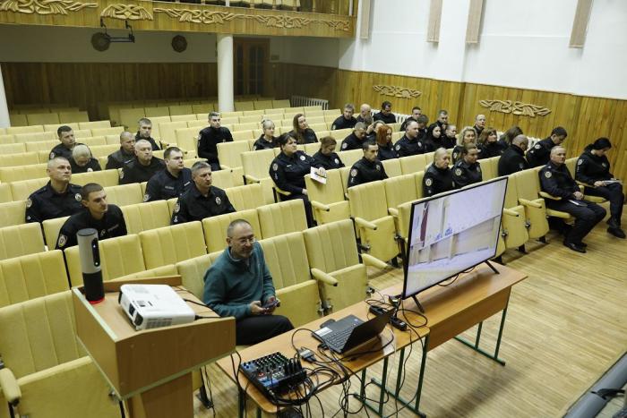 Представник поліції ознайомив особовий склад ХНУВС зі структурою підрозділу, окреслив основні завдання та специфіку службової діяльності на період воєнного стану, зазначив напрями взаємодії у разі спільного з університетом виконання службових завдань з охорони публічної безпеки та громадського порядку під час ускладнення оперативної обстановки.