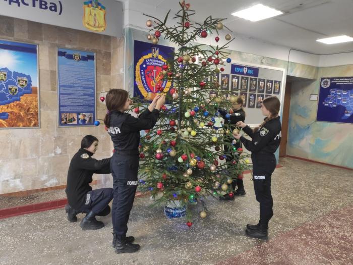 Життя триває і, навіть в умовах війни, працівники та курсанти університету намагаються покращити настрій. Напередодні новорічно-різдвяних свят курсанти факультетів № 1 та № 4 ХНУВС створили святкову атмосферу у навчальному корпусі, гуртожитку та їдальні. Хлопці встановили ялинки, а дівчата перетворили їх у казкових красунь – прикрасили їх гірляндами та іграшками.