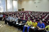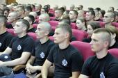 Ректор Харківського національного університету внутрішніх справ полковник поліції Валерій Сокуренко зустрівся із особовим складом табірного збору. Він привітав першокурсників із вступом до університету та зазначив, що вдячний їхнім батькам за те, що вони виховали справжніх патріотів, які у такий непростий для країни час обрали професію поліцейського. «Усі ви – представники різних регіонів України, але вас об’єднало бажання здобувати знання, розвивати свої здібності та служити українському народові. Тож ми будемо робити все від нас залежне, щоб створити для вас необхідні умови», – підкреслив Валерій Васильович.