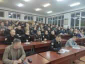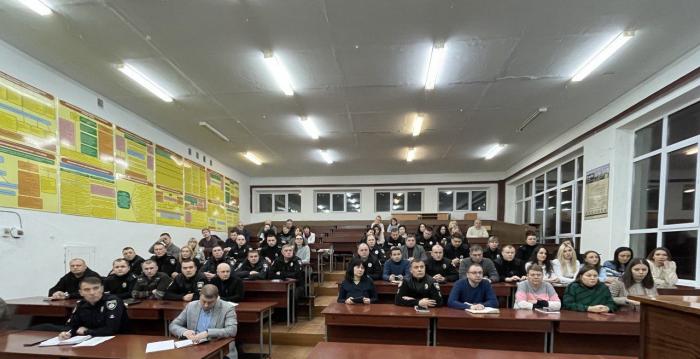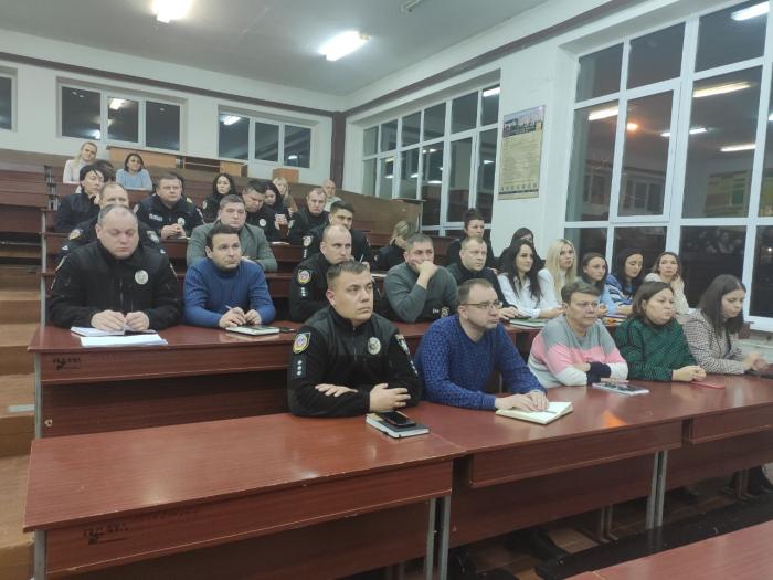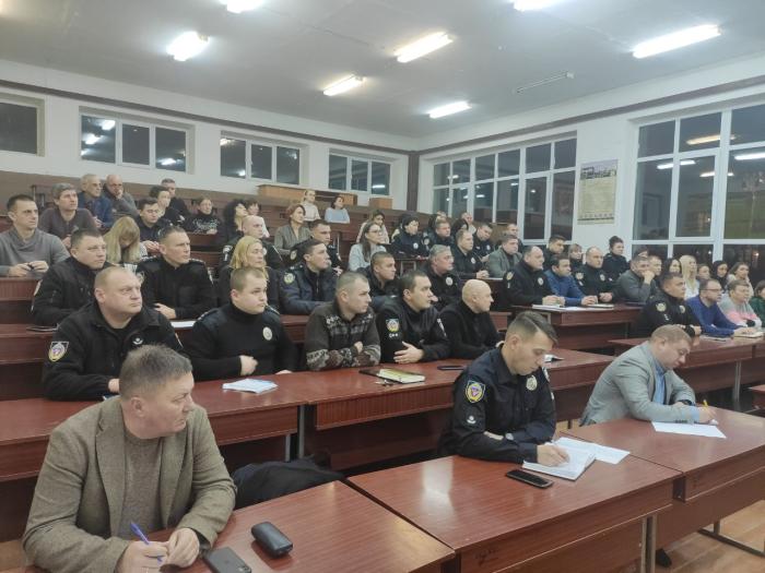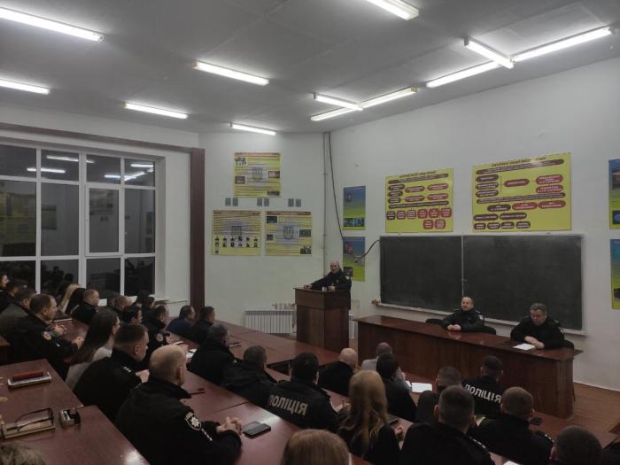 У зустрічі взяли участь начальник районного управління поліції в м. Кам’янець-Подільський полковник поліції Василь Шкіндюк, декан факультету № 1 полковник поліції Олександр Музичук, т.в.о. декана факультету № 4 підполковник поліції Микола Марчук, науково-педагогічні працівники та курсові офіцери факультетів. Валерій Васильович зазначив, що, незважаючи на складний воєнний час, курсанти мають здобувати якісну освіту, набувати професійних навичок, практичного досвіду. «Ми маємо бути вимогливими та принциповими і до наших курсантів, і до підлеглих, а перш за все – до себе. Зараз курсанти 2-4 курсів проходять навчальну практику та стажування. Всі ми відповідальні за них, бо навчально-виховний процес не повинен припинятися, необхідно постійно його вдосконалювати. Курсанти мають дотримуватись дисципліни та законності, сумлінно виконувати службові обов'язки, бути справжніми патріотами своєї держави», – наголосив ректор.