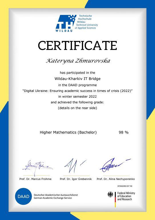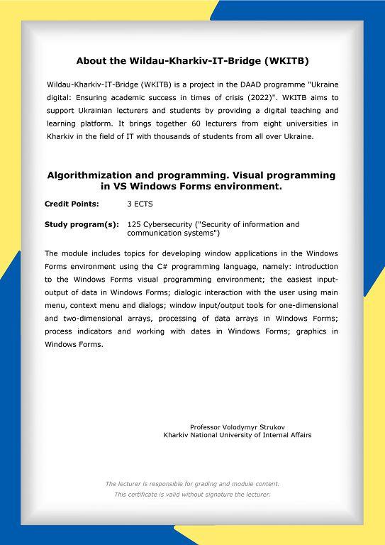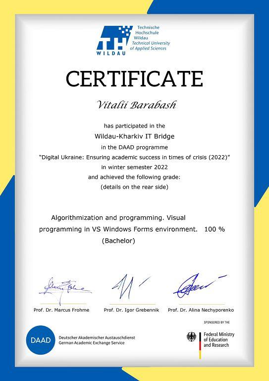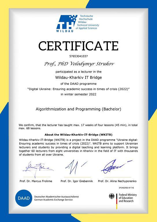 Студенти 1-2 курсів факультету № 6 Харківського національного університету внутрішніх справ, які навчаються за спеціальністю «Кібербезпека», та викладачі кафедри кібербезпеки та DATA-технологій взяли участь у міжнародній програмі академічних обмінів DAAD «Digital Ukraine: Ensuring Academic Success in Crisis (2022)». Проєкт Wildau-Kharkiv IT Bridge (WKITB) запроваджений німецькою службою академічних обмінів DAAD та Технічним університетом прикладних наук Вільдау для викладачів і студентів українських вишів, які навчаються за напрямом IT.