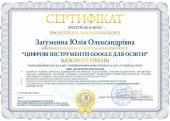 За результатами курсу Юлія Загуменна перейшла на наступний рівень проходження підвищення кваліфікації та отримала підсумковий сертифікат за базовим рівнем, що засвідчує успішне проходження програми підвищення кваліфікації (тривалість навчання склала 30 годин (1 кредит ECTS)).