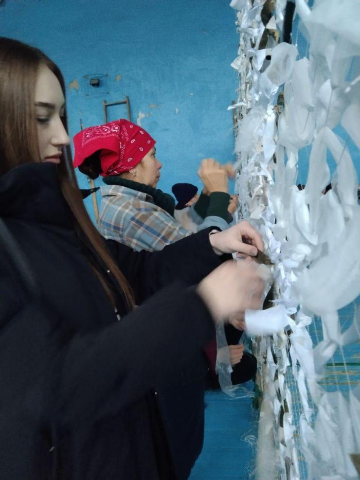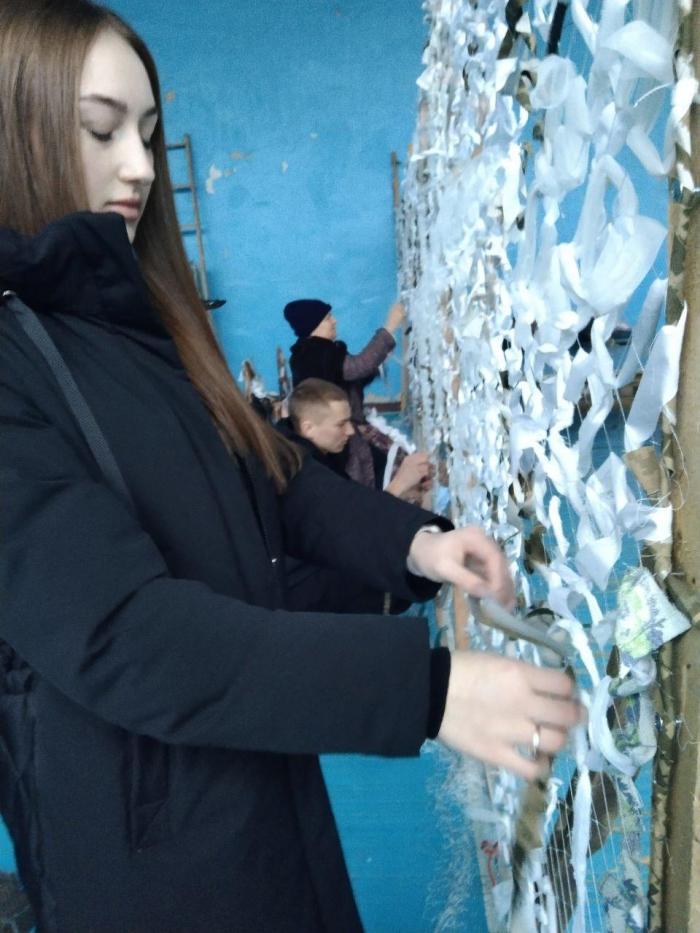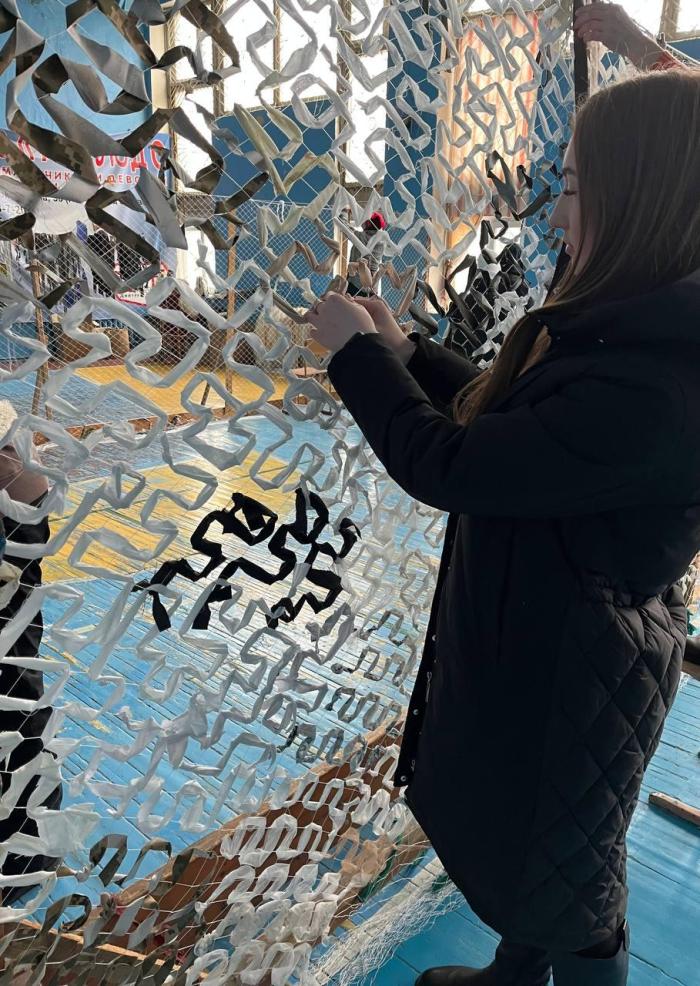 «Плести маскувальні сітки я прийшла вперше, – говорить курсантка 1 курсу Юлія Івченко, – і відразу відчула відповідальність за цю кропітку роботу, яку щоденно роблять волонтерки благодійного фонду. Вони спеціально підбирають відтінки тканини та специфіку плетіння, аби наші військові та їхня техніка стала непомітною для ворога».