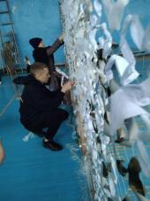 Студенти та курсанти 1 курсу Сумської філії ХНУВС – Владислав Барабаш, Марія Ковбас, Юлія Івченко, Олександр Овчаров і Вікторія Ярова допомагають Благодійному фонду «Дзеркало добра» плести маскувальні сітки, які вкрай необхідні для військових ЗСУ. З представниками фонду волонтерський загін Сумської філії співпрацює з жовтня минулого року.