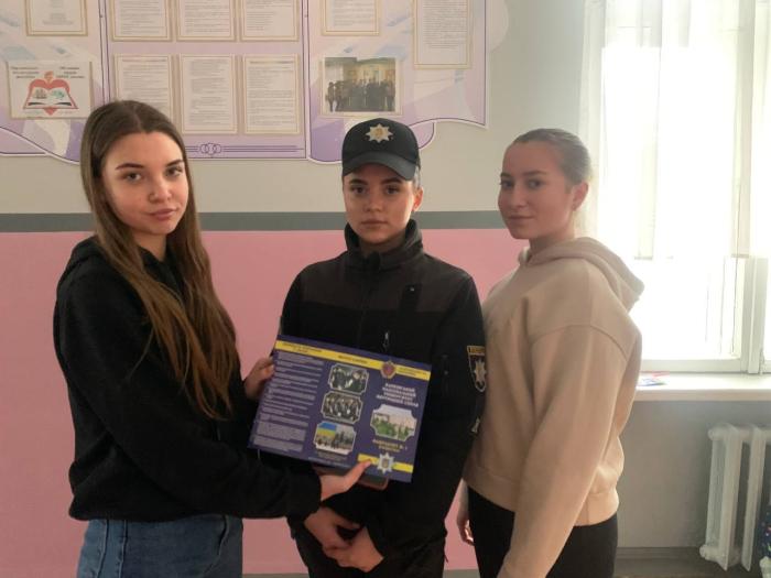 Майбутні поліцейські розповіли школярам про переваги навчання в університеті, про факультети та спеціальності, за якими готують фахівців, про умови вступу до поліцейського вишу, подальше навчання за обраними спеціальностями тощо.