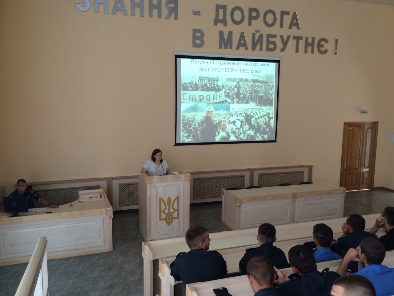 Для курсантів Харківського національного університету внутрішніх справ було проведено відеолекторій, присвячений 25-й річниці з Дня Незалежності України. Лекцію на тему «Одна Україна – єдиний народ» прочитала старший науковий співробітник Харківського історичного музею Людмила Глазкова.