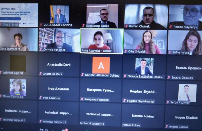 Під час обговорення розглянули низку питань: «Інститут групових позовів: перспективи для вирішення проблем та правові можливості», «Практика застосування групових позовів в європейських державах», «Передумови та законодавчі перспективи формування інституту групового позову в Україні», «Групи правовідносин, на які можливо поширити інститут групових позовів».