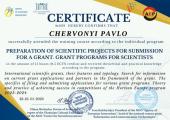 Цей курс надав можливість ознайомитися з особливостями проєкту в науковій сфері, структурою та його головними елементами успішності, з відкритими грантовими можливостями, із правилами заповнення та надання заявок на наукові гранти, а також принципами підбору грантів за інтересами/потребами.