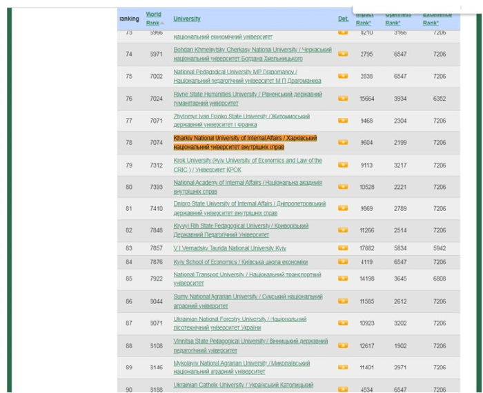 Харківський національний університет внутрішніх справ у рейтингу університетів посів 78 місце і це найкращий результат серед ЗВО МВС, що здійснюють підготовку поліцейських.