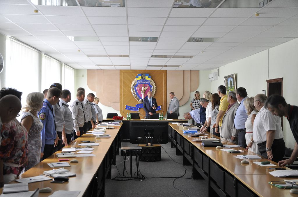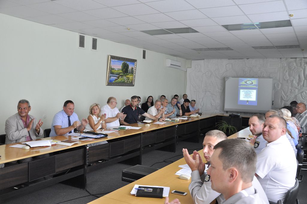 Ректор університету генерал поліції третього рангу Валерій Сокуренко привітав усіх присутніх із наступаючим святом Дня знань, побажав миру в державі, нових професійних та творчих успіхів, добра і злагоди в сім’ях та розпочав засідання.