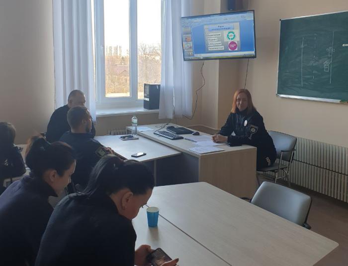 Завідувач кафедри поліцейської діяльності та публічного адміністрування факультету № 3 Ольга Безпалова під час підвищення кваліфікації патрульних поліцейських провела бінарне заняття на тему «Особливості несення служби поліцією у випадку введення правового режиму воєнного стану чи надзвичайного стану» за участі старшого інспектора з комунікації Харківського РУП № 2 ГУНП в Харківській області Сергія Резанова.
