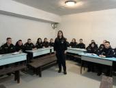 В межах заняття слідча розповіла про роль працівників поліції у процесі забезпечення безпеки та законності під час виборчого процесу, а саме про особливості залучення поліцейських до охорони території виборчої дільниці та сейфу із виборчими бюлетенями, про специфіку реєстрації та розслідування злочинів, що вчиняються під час проведення передвиборної агітації та виборчого процесу.