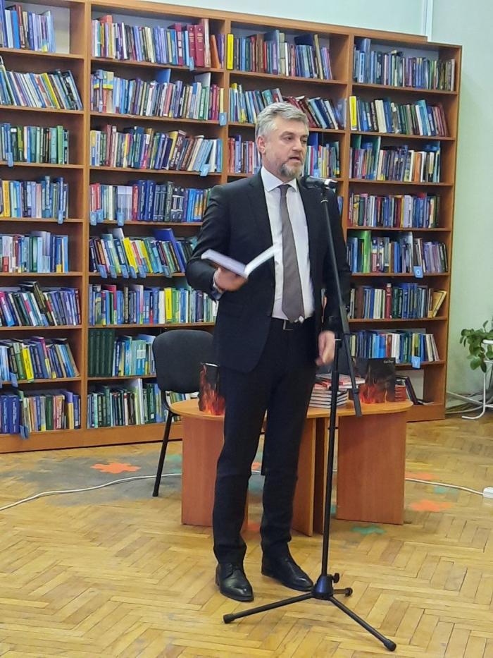 Напередодні Дня єднання здобувачі вищої освіти Харківського національного університету внутрішніх справ взяли участь у презентації книги «Обпалені війною», яка відбулася в читальній залі Вінницької обласної наукової універсальної бібліотеки ім. В. Отамановського. Автор книги – голова профспілки працівників державних установ України Юрій Піжук – людина зі значним досвідом державної та громадської роботи.