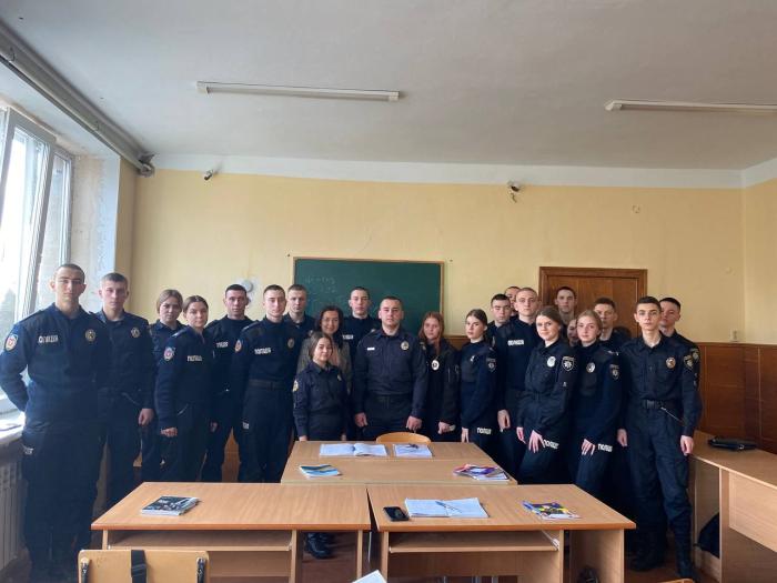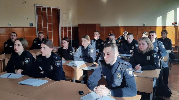Завідувачка кафедри конституційного і міжнародного права Тетяна Гудзь та оперуповноважений відділу кримінальної поліції районного управління поліції ГУНП в Полтавській області Сергій Черкаський провели бінарне заняття для курсантів першого курсу факультету №1 з дисципліни «Конституційне право», що було присвячено темі «Виборче право України».